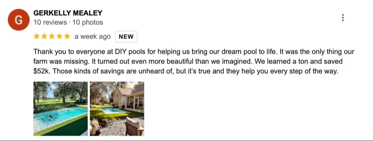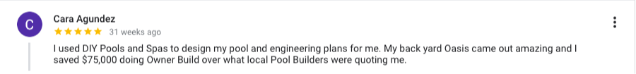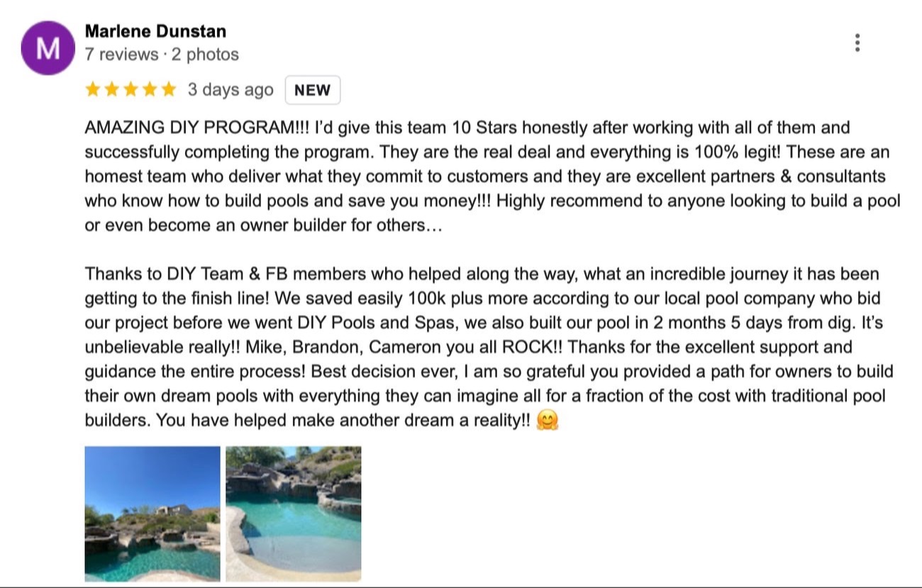 DIY Pools and Spas LLC is committed to helping homeowners achieve significant cost savings on their dream pool projects through our proven guidance and support. The savings figures stated in our advertisements, webinars, presentations, sales calls, website, and other online content represent the average results achieved by most of our clients. However, we cannot guarantee you will experience the same results.