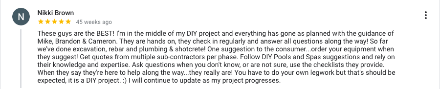 Connect with hundreds of other DIY pool builders. Our community is an amazing resource for support, and inspiration.